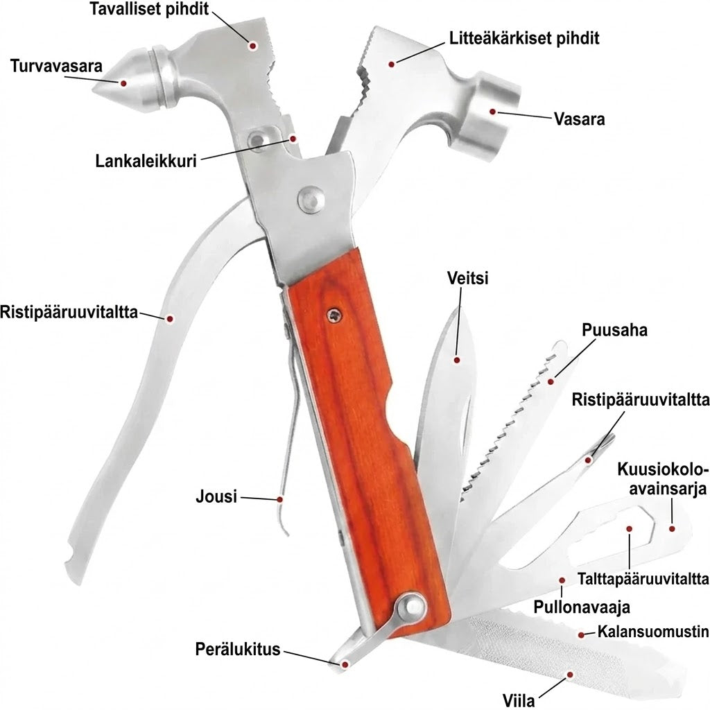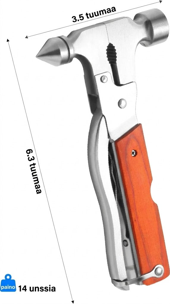 Lopeta raskaan työkalupakin raahaaminen ja valitse tämä kaikki-yhdessä-ratkaisu. Olipa kyseessä ruuvin kiristäminen, johdon katkaisu tai pullon avaaminen, tämä monitoimityökalu ratkaisee päivittäiset ongelmasi välittömästi. Kuudentoista välttämättömän toiminnon integrointi takaa välittömän parannuksen tehokkuuteesi remontoinnin tai telttailun aikana. Se on kätevin ja helpoin tapa olla aina valmiina mihin tahansa odottamattomaan tilanteeseen kotona ja sen ympäristössä.